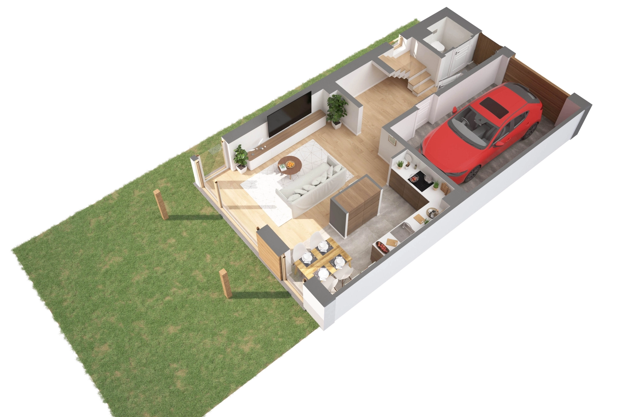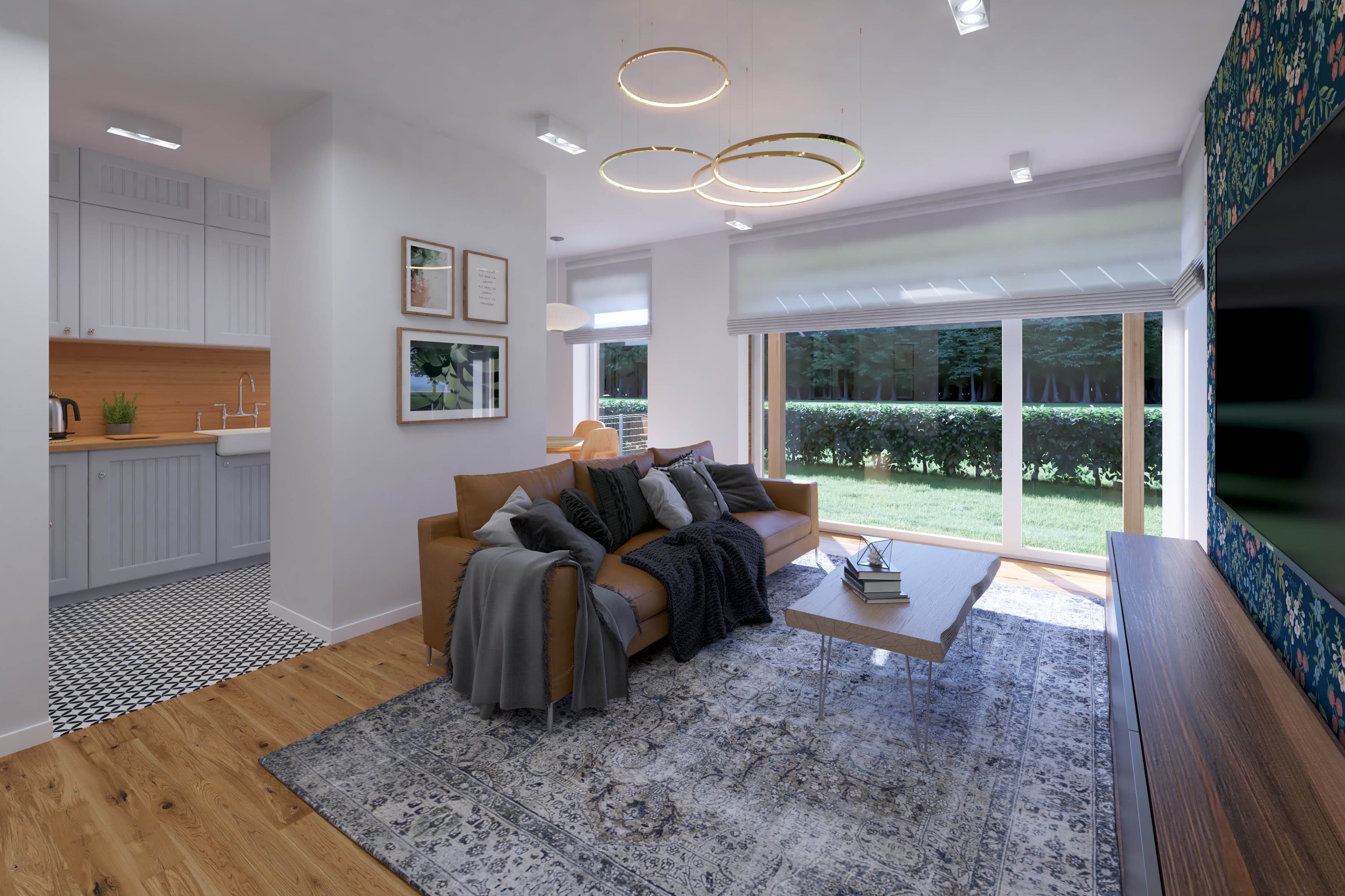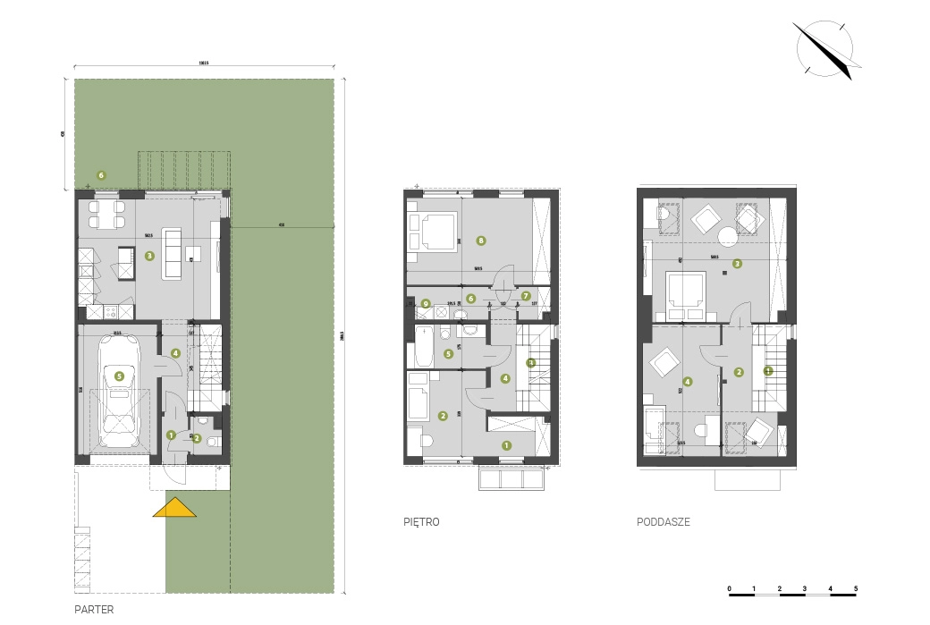 Architektura osiedla bazuje na minimalistycznej elegancji – biele, szarości i drewno idealnie komponują się z sąsiadującym lasem. Do każdego lokalu przynależy garaż, dodatkowe miejsce postojowe oraz prywatny ogród. O bezpieczeństwo mieszkańców dba całodobowy monitoring i zamknięty charakter osiedla.